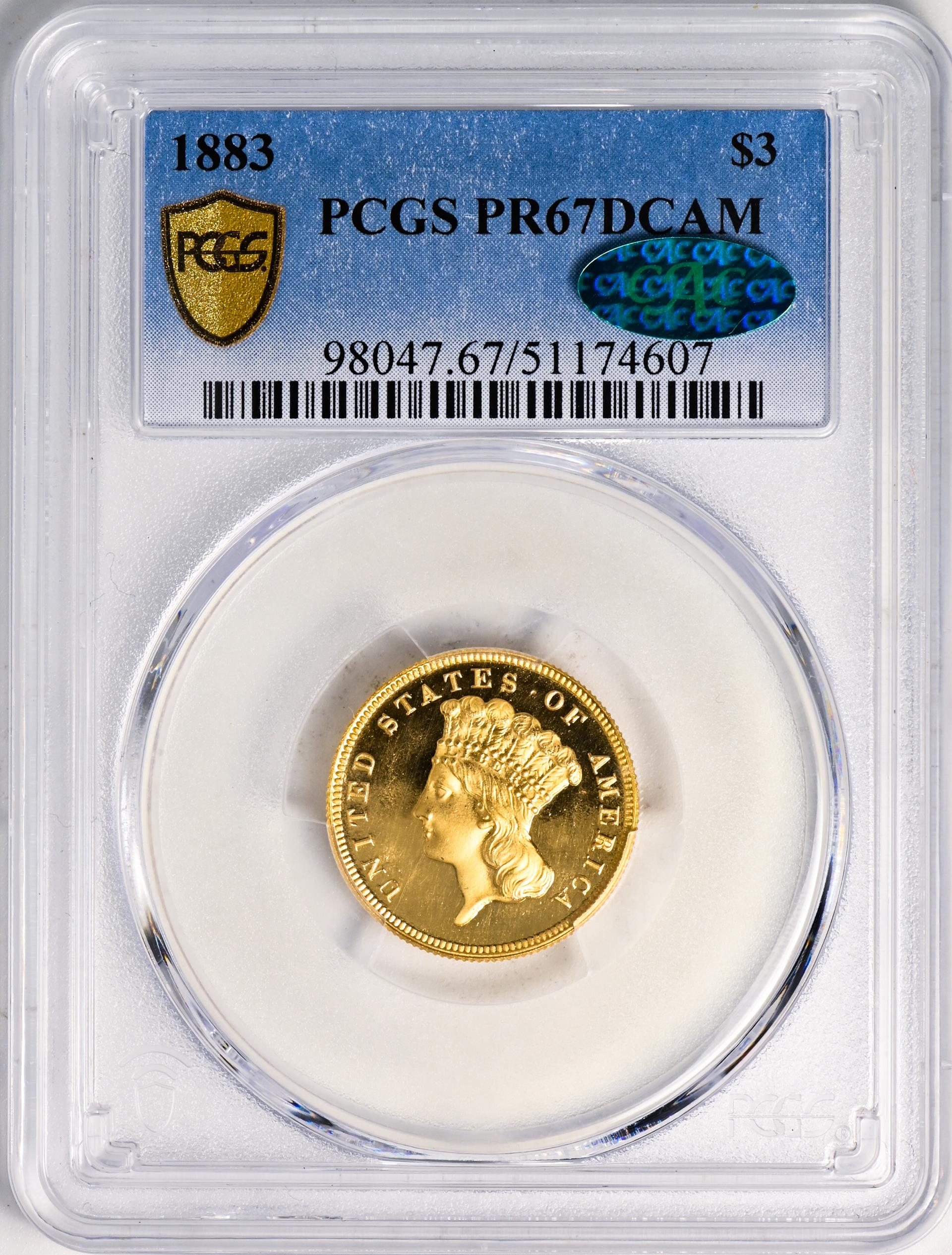 1883 INDIAN PRINCESS $3 PR67 Deep Cameo